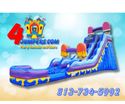 - OCCUPANCY: A maximum of 5-6 kids of equal size at one time for bounce houses, and 1 person at a time for slides is what most inflatable manufacturers recommend.
